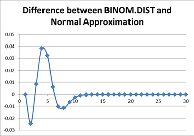 There can be some benefits to using a normal approximation in certain circumstances, such as much higher probability of occurrence. When the probability of success is close to 50 percent, and the sample size is large, the normal approximation works much better.