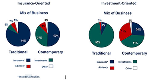 Over time, competitive pressures, market demands, and new regulations have created a new profile for today’s insurance advisors. Many have broadened their practices and incorporated investment and advisory solutions. Likewise, investment-oriented advisors now include insurance and advisory services as part of their business. Financial services organizations have responded in kind, as many now offer-to varying degrees-a wide range of insurance, investment, and advisory solutions through affiliated and third-party channels.