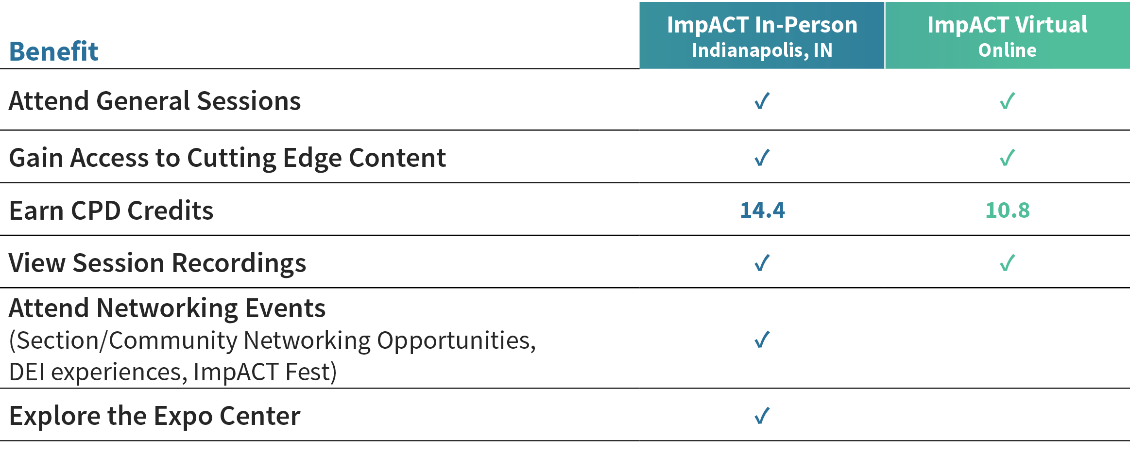 Gain even more CPD credits! In-person attendees will receive a 50% off coupon in their confirmation email to use towards the Virtual ImpACT Conference.