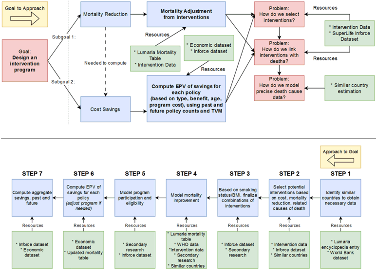 This year, the participants of the Case Study Challenge played the role of external actuarial consultants for SuperLife, one of the major life insurance companies in the fictional country of Lumaria. SuperLife was looking for ways to reduce its policyholders’ expected mortality rate with potential health incentive programs that could pair with its long-term insurance products. Its product development team had conducted some initial research, and executives believed that the next step would be to bring in outside consultants to get some new ideas and confirm some of the team’s findings.[1]