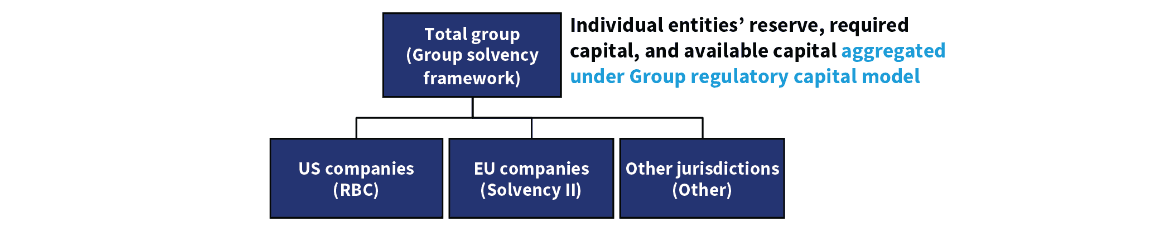 Group capital is calculated by summing together the individual entity capital from different jurisdictions: