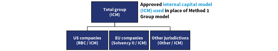 Allianz[7] is an example of a company utilizing an ICM. Companies in certain jurisdictions may be able to employ a combination of methods, as is the case for Allianz, which calculates Solvency II capital for its European businesses using an ICM and combines that with capital for its US business using the D&A method (a combination of Methods 2 & 3).