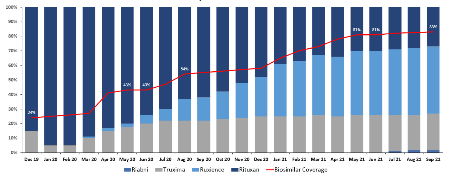 Rituxan Biosimilars Adoption Versus Percentage of Covered or Better Status