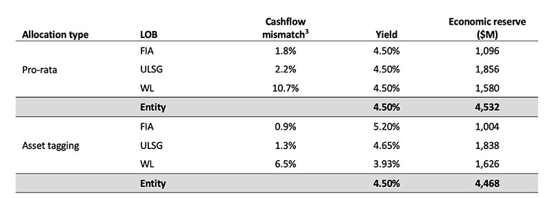 In the first step, Company ABC allocates entity-level assets to each LOB by performing asset tagging to minimize cashflow mismatch across the LOBs without setting specific target yields at the LOB-level.