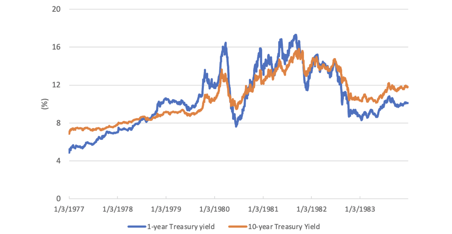 Courbes de rendement inversées des bons du Trésor (1979-1982)