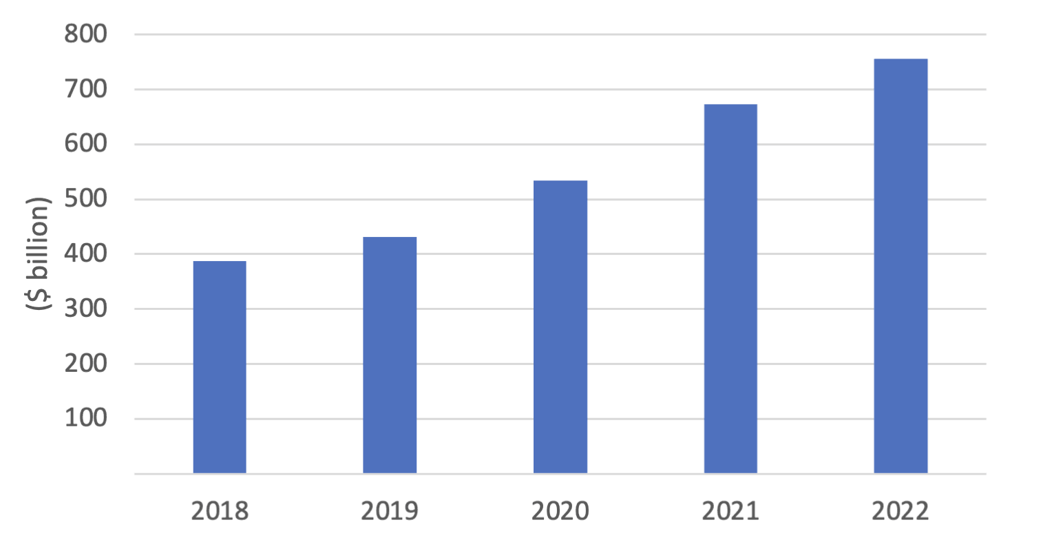 La réassurance proposant des solutions à forte intensité capitalistique (RFIC), dite en anglais « asset-intensive reinsurance » (AIR), permet aux assureurs de transférer de façon économique tous les risques liés aux nouveaux contrats ou en vigueur réassurés. La RFIC procure des solutions notamment au problème de liquidité susmentionné, aux pressions exercées sur le capital, à la pression concurrentielle et au risque de gestion de l’actif-passif, et ce, pendant la durée des contrats sous-jacents. La RFIC est devenue un outil populaire auprès des assureurs vie, comme en témoigne l’augmentation annuelle à deux chiffres des actifs que les assureurs vie ont transférés aux réassureurs proposant des solutions à forte intensité capitalistique (figure 4) [v]. Grâce notamment à une combinaison d’avantages fiscaux, de politiques de placement souples et d’exigences de capital, les réassureurs proposant des solutions à forte intensité capitalistique peuvent habituellement offrir un rendement nettement supérieur à celui des assureurs. Un nombre non négligeable d’assureurs ont constaté d’importantes hausses de leurs ventes après avoir réassuré de nouveaux contrats, car la RFIC leur a permis de rendre leurs produits plus concurrentiels et d’améliorer leur propre rendement. En outre, étant donné que le capital de nombreux vendeurs de rentes a subi des pressions après une année de vente record de rentes fixes différées en 2022, certains vendeurs ont réassuré les contrats de rentes fixes différées en vigueur ou d’autres groupes de contrats au moyen de la RFIC, afin de renforcer immédiatement leur situation en capital et leur niveau d’excédent et de pouvoir vendre davantage de nouveaux contrats. Sinon, ils auraient eu du mal à obtenir leur part de marché lorsque les ventes de l’ensemble de l’industrie ont bondi.