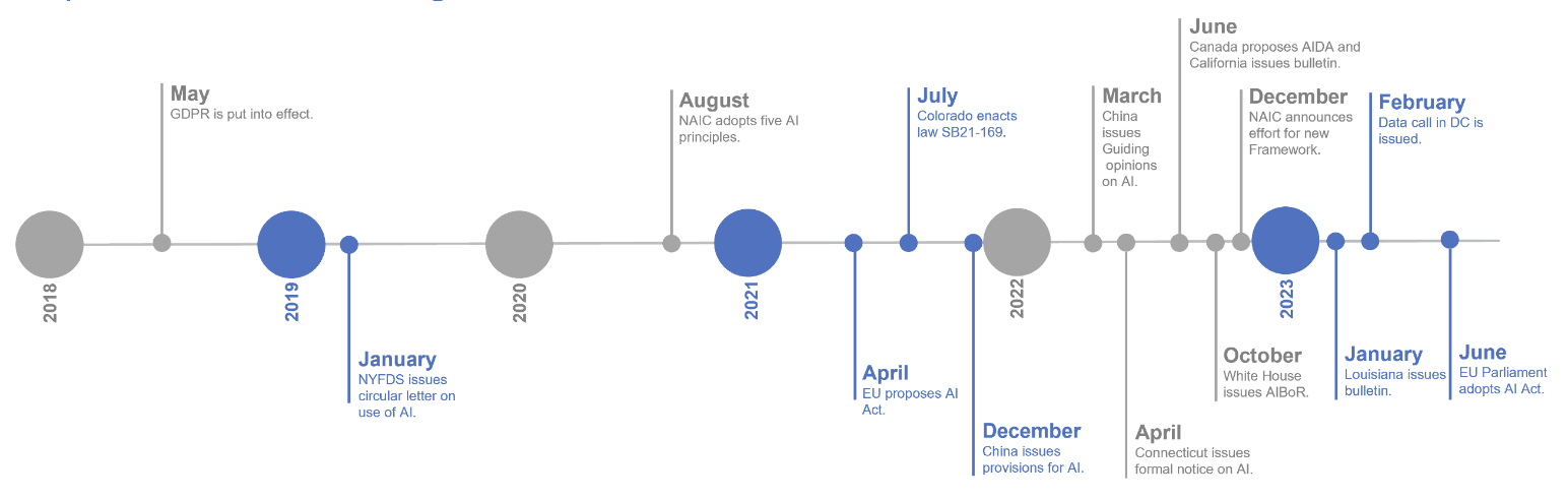 À la fin de 2022, l’Innovation Cybersecurity and Technology (H) Committee a annoncé un projet visant à adopter un cadre réglementaire plus précis pour l’utilisation de l’IA. Ce cadre sera conçu pour lutter contre les préjugés et la discrimination dans les systèmes d’IA au moyen de directives générales fondées sur des principes.