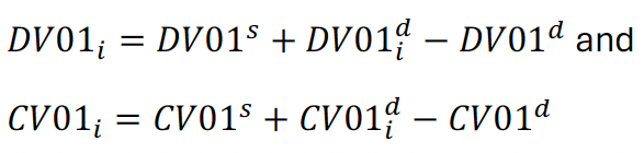 - Calculate DV01 and CV01 using stochastic runs represented with a superscript “s”.