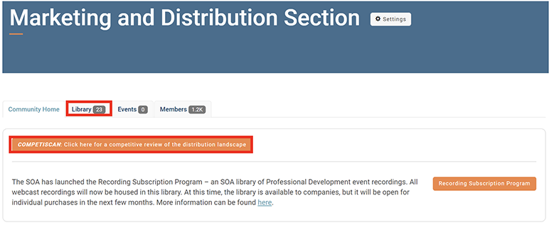 If you have any questions about accessing SOA Engage, Competiscan, or the Marketing and Distribution Section, please contact sections@soa.org.