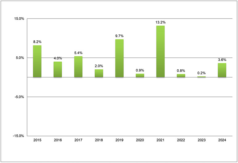 Percentage Change in Recurring Canadian New Business 2015 – 2024
